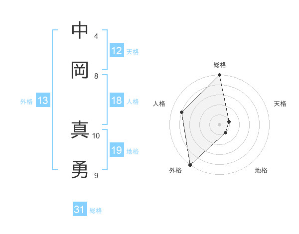 中岡 真勇さんを姓名の画数から五運を鑑定