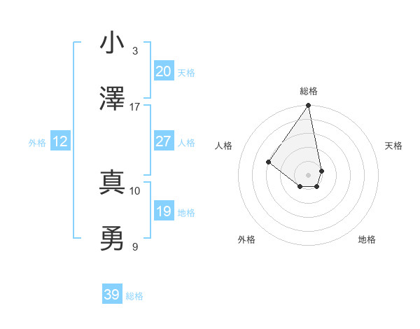 小澤 真勇さんを姓名の画数から五運を鑑定