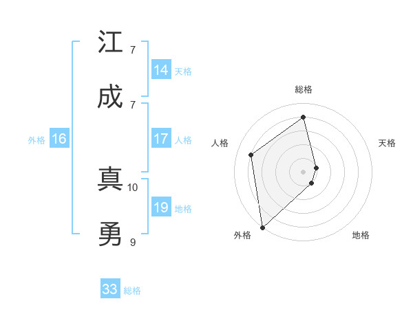 江成 真勇さんの総格は33画の4点!