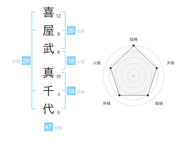 喜屋武 真千代さんの総格は47画の5点!