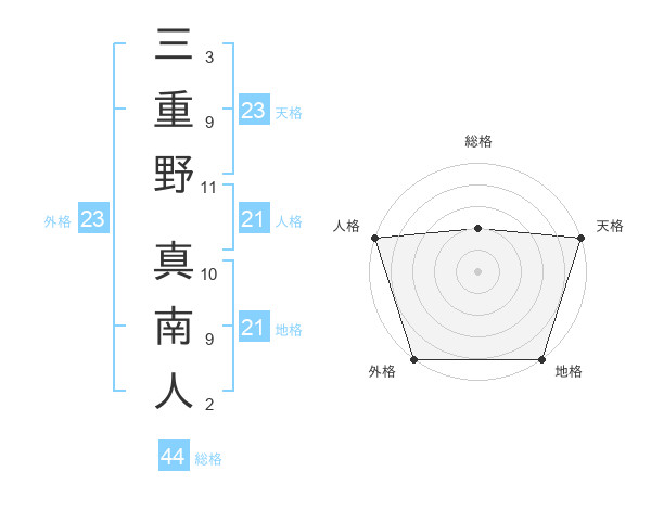 三重野 真南人さんの総格は44画の2点!
