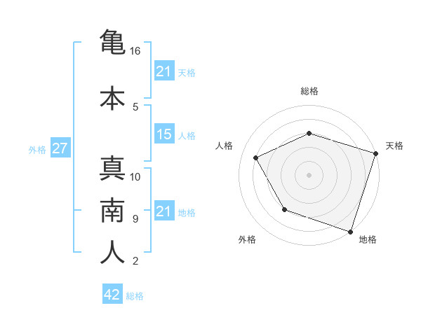 亀本 真南人さんの地格は21画の5点!