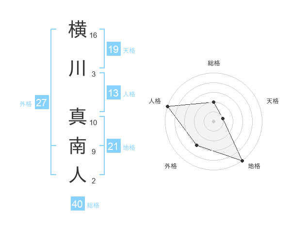 横川 真南人さんの総格は40画の2点!
