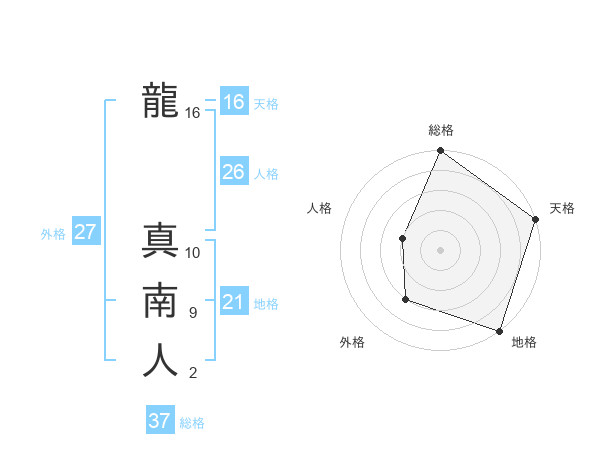 龍 真南人さんの総格は37画の5点