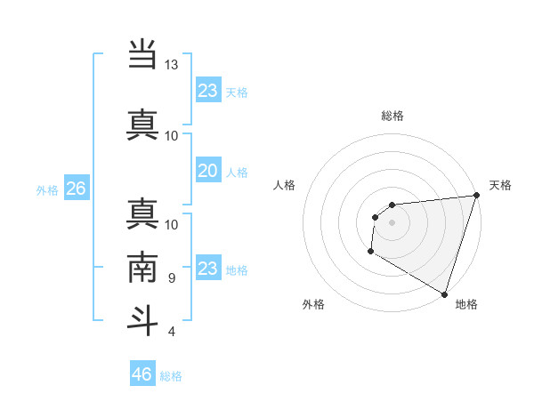 当真 真南斗さんの総格は46画の1点!