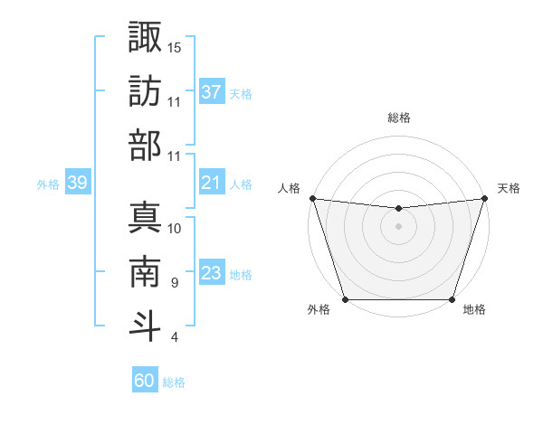 諏訪部 真南斗さんの外格は39画の5点!
