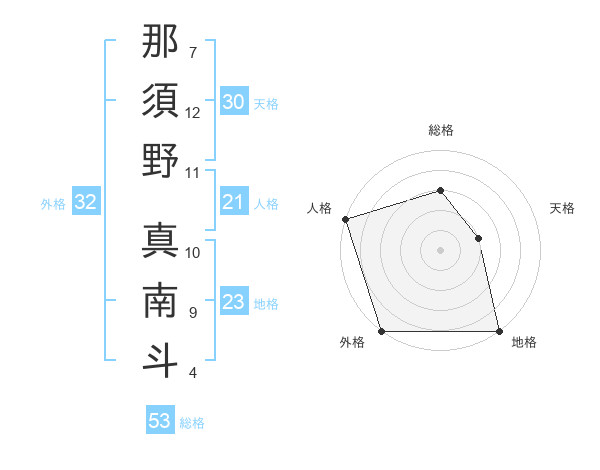 那須野 真南斗さんの外格は32画の5点!