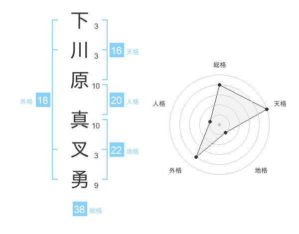 下川原 真叉勇さんを姓名の画数から五運を鑑定