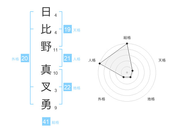 日比野 真叉勇さんを姓名の画数から五運を鑑定