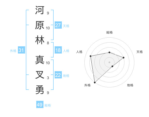 河原林 真叉勇さんを姓名の画数から五運を鑑定