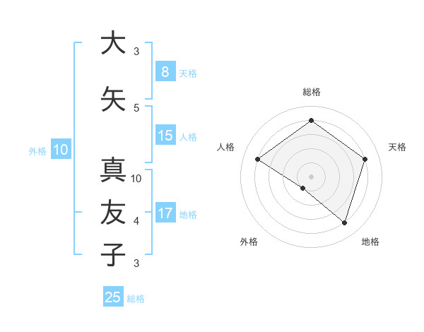 大矢 真友子さんを姓名の画数から五運を鑑定