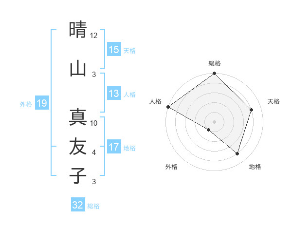 晴山 真友子さんを姓名の画数から五運を鑑定