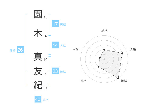 園木 真友紀さんを姓名の画数から五運を鑑定