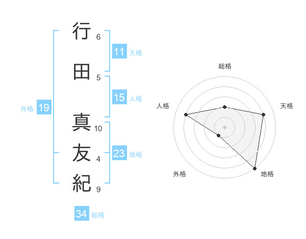 行田 真友紀さんを姓名の画数から五運を鑑定