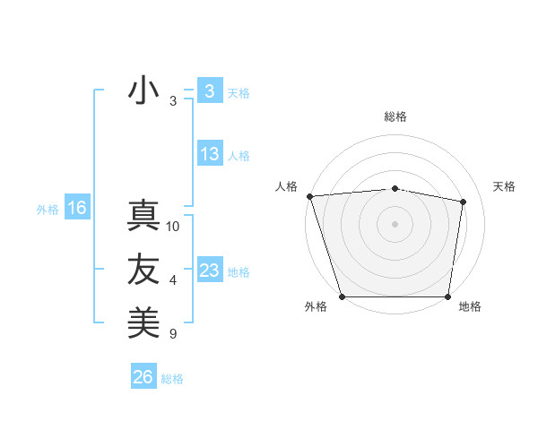 小 真友美さんを姓名の画数から五運を鑑定