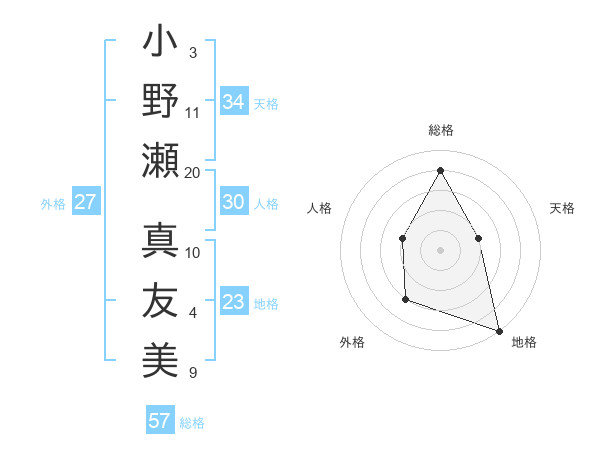 小野瀬 真友美さんを姓名の画数から五運を鑑定