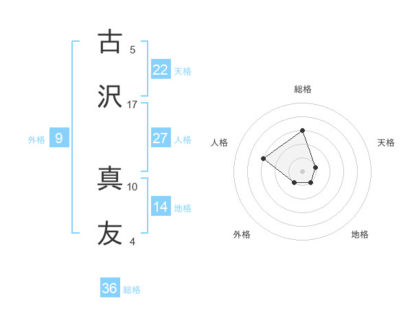 本サイトの鑑定結果の正当性は保証しません。鑑定結果は参考程度にお読みください。実際の名づけにご利用される場合は、姓名判断についてご自身でよくお調べください。