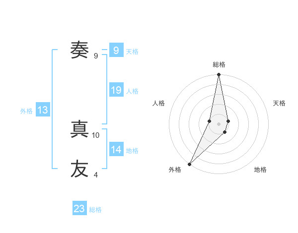 奏 真友さんの総格は23画の5点!