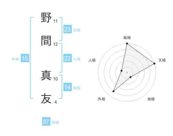 占い結果は姓名判断である以上、良い場合も悪い場合もありますが、決してお名前を誹謗中傷するものでなく、画数の自動計算によって得られたものです。また、本サイトの検索によって得られた鑑定結果で、第三者を誹謗中傷したり名誉を棄損するような行為を禁じます。