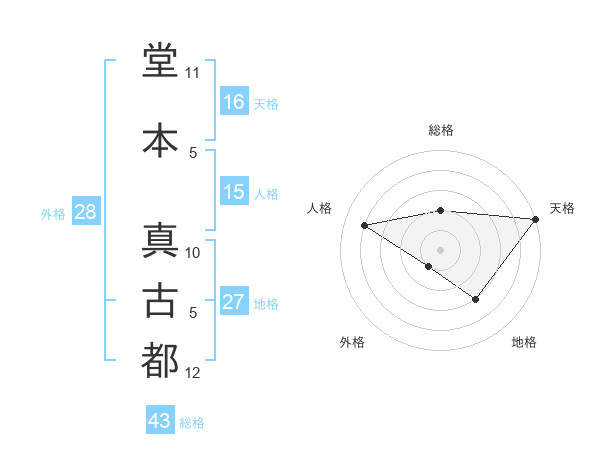 堂本 真古都さんを姓名の画数から五運を鑑定