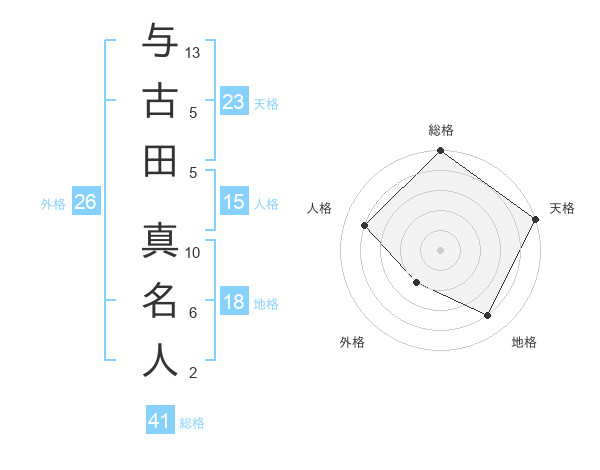 与古田 真名人さんの総格は41画の5点