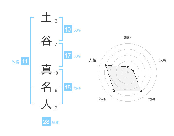 土谷 真名人さんの地格は18画の4点!
