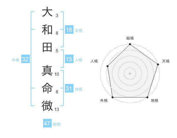 大和田 真命微さんを姓名の画数から五運を鑑定