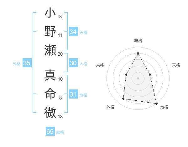 小野瀬 真命微さんの総格は65画の4点!