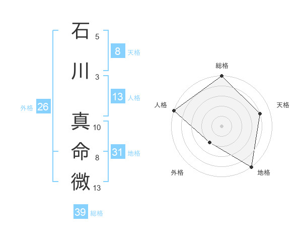 石川 真命微さんの総格は39画の5点!