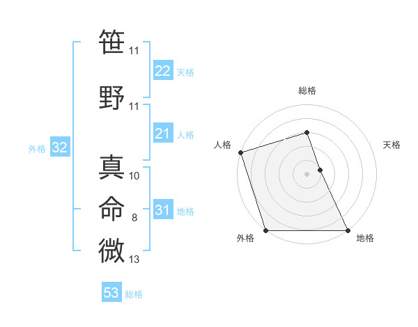 笹野 真命微さんを姓名の画数から五運を鑑定