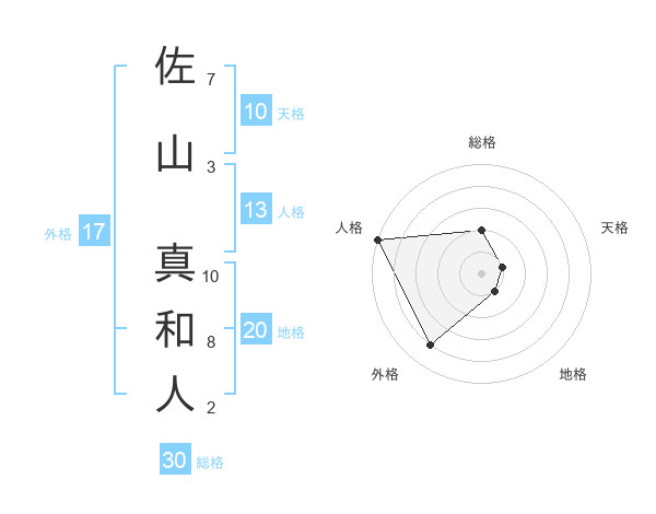 佐山 真和人さんを姓名の画数から五運を鑑定