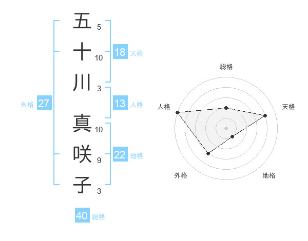 五十川 真咲子さんを姓名の画数から五運を鑑定