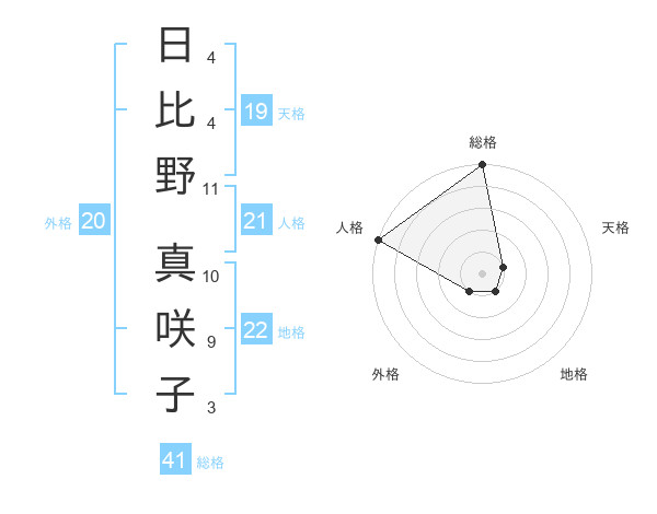 日比野 真咲子さんを姓名の画数から五運を鑑定