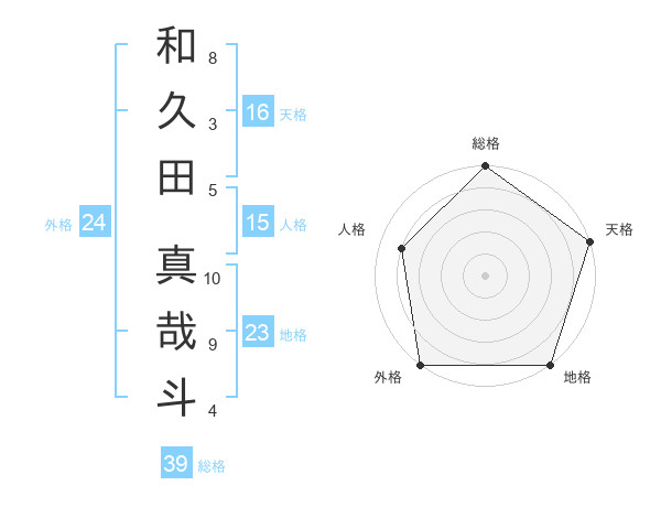 和久田 真哉斗さんを姓名の画数から五運を鑑定