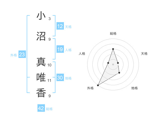 小沼 真唯香さんを姓名の画数から五運を鑑定