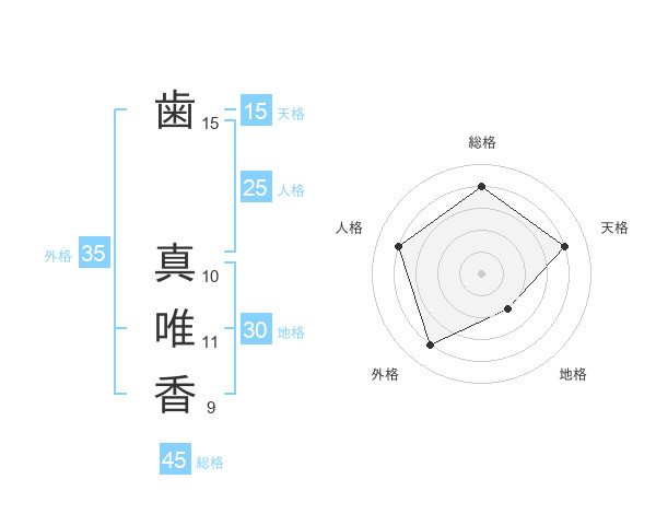 歯 真唯香さんを姓名の画数から五運を鑑定