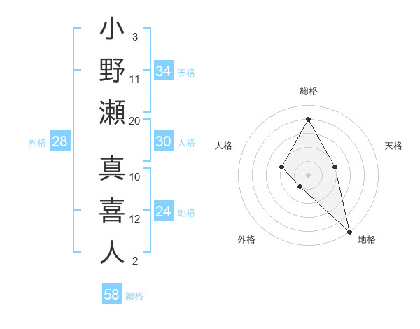 小野瀬 真喜人さんを姓名の画数から五運を鑑定