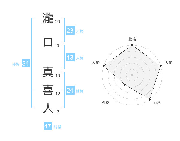 瀧口 真喜人さんを姓名の画数から五運を鑑定
