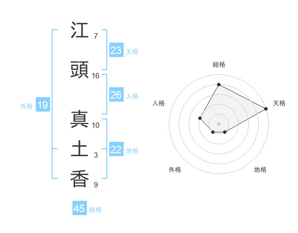 江頭 真土香さんを姓名の画数から五運を鑑定