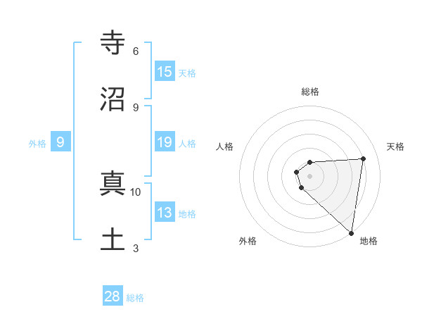 寺沼 真土さんを姓名の画数から五運を鑑定