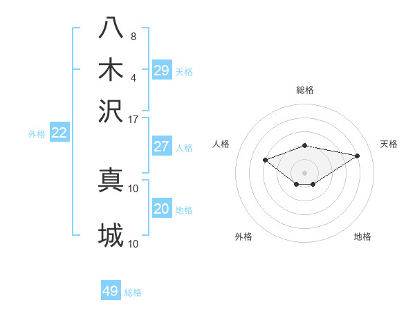 八木沢 真城さんの総格は49画の2点!