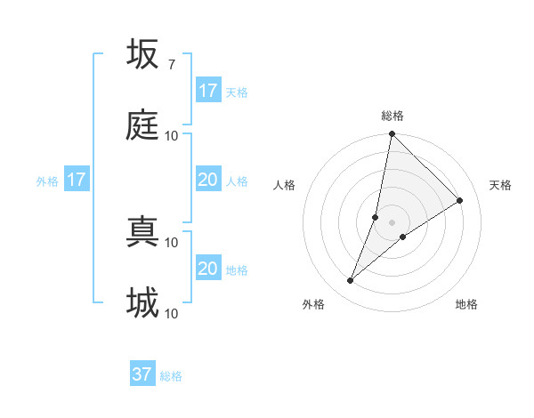 坂庭 真城さんを姓名の画数から五運を鑑定