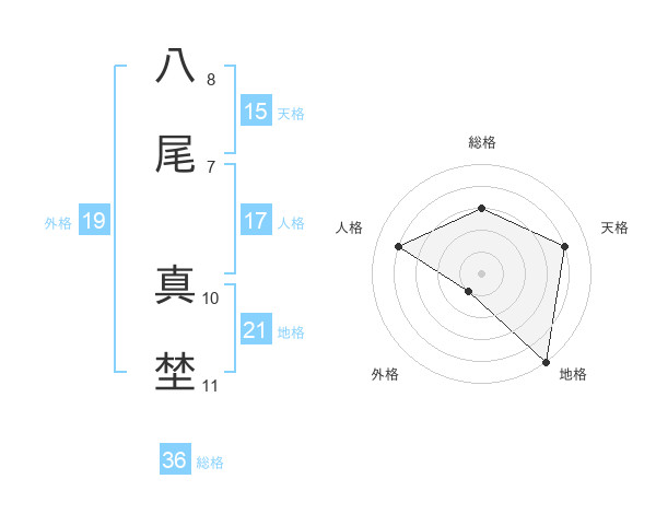 八尾 真埜さんの天格は15画の4点!