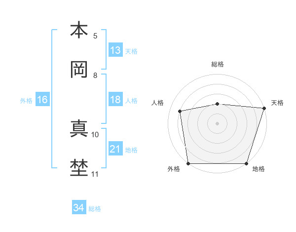本岡 真埜さんの総格は34画の2点!