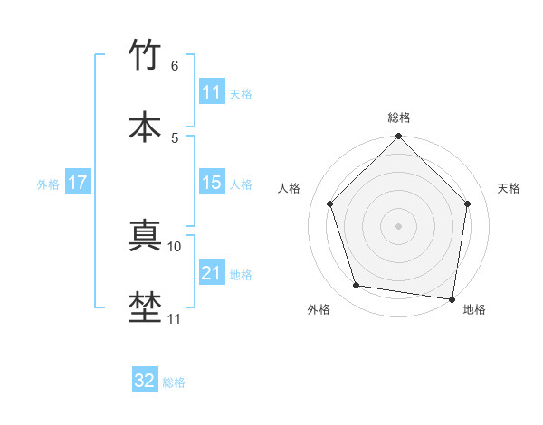 竹本 真埜さんの総格は32画の5点!