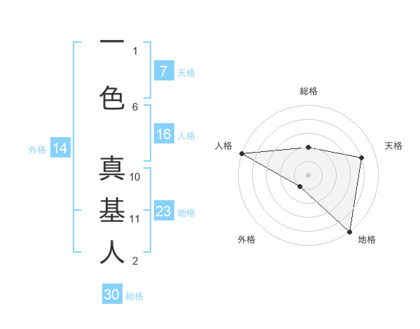 一色 真基人さんの地格は23画の5点!