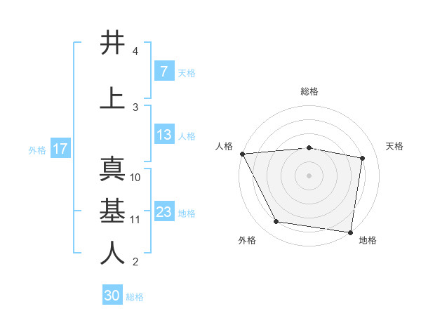 井上 真基人さんの地格は23画の5点!