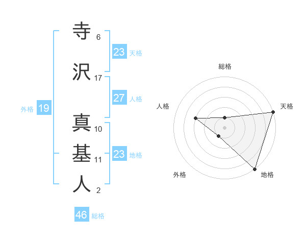 寺沢 真基人さんの総格は46画の1点!