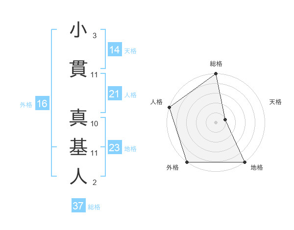 小貫 真基人さんの総格は37画の5点!