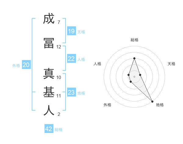 成冨 真基人さんを姓名の画数から五運を鑑定